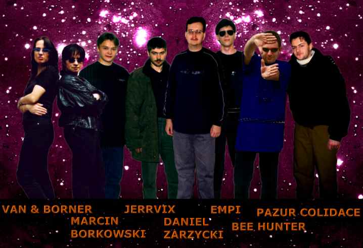 22 kwietnia 2002 Wybrane utwory z naszego albumu będą od dziś prezentowane w cotygodniowej audycji El-Mania w Radio PLUS Lublin. Jak ktoś mieszka w odległości do 130km od Lublina to może posłuchać w poniedziałki o 22:15 na 87,9MHz. Pozostali mogą przejrzeć zapis audycji na stronie EL-Manii. 25 marca 2002 PREMIERA !!! Po prawie dwóch latach przygotowań i walk z przeciwnościami losu mamy już gotowe płytki :-) Czekamy na ZAMÓWIENIA ! i powiedzcie znajomym ... Aha, w sekcji co jest grane są dwa pełne (!!!) utwory w mp3 do ściągnięcia - El-Projekt Voices i The Bell - ostatnie na dysku A. 18 grudnia 2001 Mieliśmy nadzieję sprezentować Wam El-Projekt pod choinkę, ale Zaiks się nie spisał, poczekamy więc jeszcze trochę. Życzymy wszystkim Wesołych Świąt i Szczęśliwego Nowego Roku. 17 grudnia 2001 Na naszej stronie znajdziecie wykonawcę o nazwie Majestibo. Nie jest to nowa osoba a jedynie pseudonim artystyczny Marcina Borkowskiego, którym od niedawna się posługuje. 29 pazdziernika 2001 Hej ! Mamy "nowe" wspólne zdjęcie !!! Są też zaktualizowane okładki : przód i tył. 28 pazdziernika 2001 W dziale co jest grane sa już fragmenty dwóch kompozycji duetu Van & Borner oraz cover - utwór z repertuaru ... Ennio Morricone - "Sacco And Vanzetti". Tym samym macie już możliwość posłuchania fragmentów wszystkich utworów z albumu El-Projekt. The Bell będący wspólnym naszym wykonaniem niech będzie dla Was niespodzianką. Dodam, że nie będzie to jedyna niespodzianka :-) 25 sierpnia 2001 Bee Hunter jest szybki jak błyskawica, w ciągu paru dni dostarczył swoje utwory do El-Projektu. Proszę zajrzeć do działu co jest grane i posłuchać. Tym samym do Mistrzów Elektroniki, których utwory wykonujemy dołączył Marek Biliński - to miło, mamy polski akcent :-). 14 sierpnia 2001 Nastąpiły spore zmiany. W miejsce Marka Szulena i Kayanisa w skład El-Projektu wchodzą od dziś : gwiazda Wolnej Strefy - Bee Hunter oraz żeński (!!!) duet grający muzykę elektroniczną - Van & Borner. Już niebawem zaprezentujemy fragmenty utworów nowych wykonawców. 17 czerwca 2001 Kto był na KOMP'ie 2001 ten mógł na własne oczy zobaczyć prototyp albumu El-Projekt na stoisku płytowym, które przygotował EMPI z duetem Remote Spaces. Brakowało tylko krążków z muzyką, ale chyba już bliżej niż dalej do finału. 20 maja 2001 Mamy za sobą drugie i chyba ostateczne podejście do projektu okładki (przód i tył). Jak zwykle komentarze mile widziane. 8 luty 2001 No cóż, mimo wcześniejszych obietnic serwis Wirtualna Polska zdecydował ograniczyć swój udział w El-Projekcie do promocji internetowej. Dobre i to. Jednak sami nie udźwigniemy kosztów wytłoczenia dwupłytowego albumu i zostanie on wydany jako CD-R. Zapewniamy jednak, że dołożymy wszelkich starań, żeby nic nie odróżniało go od profesjonalnie tłoczonych wydawnictw. 06 stycznia 2001 Właśnie ukazał się styczniowy numer pisma Gry Komuterowe. W środku jest nasze wspólne El-Projektowe zdjęcie na pół strony oraz bogaty materiał na dołączonej do pisma plytce DVD. 03 stycznia 2001 Członkowie El-Projektu na topie ! Jeden utwór Daniela Zarzyckiego oraz trzy (!!!) Marka Szulena znalazły się w pierwszej dziesiątce rocznego podsumowania listy TopTlen za rok 2000. 28 listopada 2000 EMPI dorobił się własnej strony www. Zapraszamy na www.empi.z.pl. 21 listopada 2000 Rozbudowała się nam podstrona kto gra. Znajdziecie tam teraz info o każdym z nas i troche obrazków. 20 listopada 2000 Jednak będziemy gościć w styczniowym numerze pisma Gry Komputerowe, który ukaże się pod koniec br. Znajdziecie tam na płycie DVD naszą stronę www off-line, sporo całych utworów mp3, trochę informacji i zdjęcia. Nasze logo zamieszczone będzie na okładce płyty, więc wypatrujcie nas w kioskach ! 17 listopada 2000 Wszystko wskazuje na to, że wydanie naszej płyty sporo się opóźni. Jak bym miał prognozować to bym obstawiał przełom stycznia i lutego 2001 (optymistycznie). 13 listopada 2000 W podstronie co jest grane pojawiły się fragmenty dwóch utworów własnych Jerrvix'a. 09 listopada 2000 Ale odlot ! Mamy nową szatę graficzną naszej strony. Przyczynili się do tego : Olga Zmysłowska i Paweł Wojciechowski - specjaliści z serwisu Wirtualna Polska. Wielkie dzięki ! 07 listopada 2000 EL PROJEKT w komplecie !!! Teraz możecie spojrzeć nam prosto w oczy (no może niezupełnie wszystkim ;-))) ). Mamy nareszcie wspólne zdjęcie. 05 listopada 2000 Najprawdopodobniej informacje (muzyka,teksty,zdjęcia) o EL PROJEKCIE ukażą się na płycie DVD dołączanej do grudniowej edycji pisma Gry Komputerowe !!! 04 listopada 2000 Małe przetasowania w dziale co jest grane. Zamiast dwóch coverów Pazura zrobimy jeden ale wspólny ! - będzie to "The Bell" Mike'a Oldfielda. Każdy z nas zagra w nim własną interpretację melodii przewodniej. 31 października 2000 Plany, planami - stacja TV4 odmówiła zgody na upublicznienie fragmentów ich programu z naszym udziałem na naszej stronie - ale zgredy ! 26 października 2000 Przepraszamy wszystkich, którzy próbowali nas zobaczyć w TV w podanym przez nas terminie. Mimo ustalonej daty emisji (tak jak Wam podaliśmy) program z naszym udziałem został puszczony wcześniej (w sobote (21-go) i powtórka w poniedziałek (23-go)). Z tym, że nas nikt nie raczył o tym powiadomić. Planujemy niebawem, w ramach rekompensaty, zamieścić na naszej stronie krótkie fragmenciki naszego występu w formacie mpeg. 19 pazdziernika 2000 UWAGA! Przesunięty termin emisji programu z El-Projektem! Będzie nas można oglądać w programie Strefa P we wtorek (24-go pazdziernika) pózno w nocy na TV4 po filmie (czyli ok. 1 w nocy (czyli de facto będzie to już środa)). Powtórki będą w środę (25-go) ok. 6-tej rano i ok. 13-tej w poludnie. Niestety do studia nie mogli przyjechać Pazur i Daniel Zarzycki. 15 pazdziernika 2000 Kolejne fragmenty utwor
